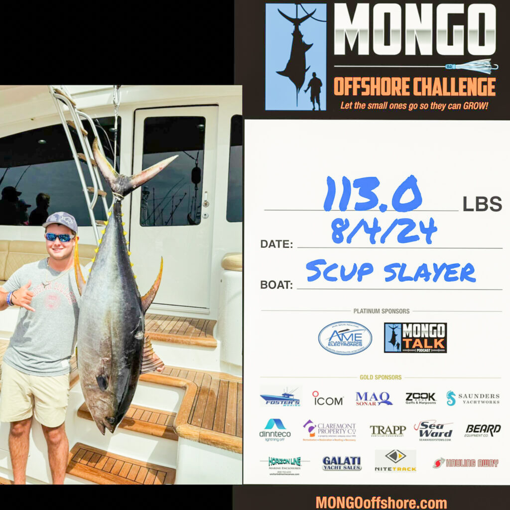 The Scup Slayer is a 72’ Viking based in Massachusetts. If this result holds up, this will be the northernmost MONGO winner in the event’s history.